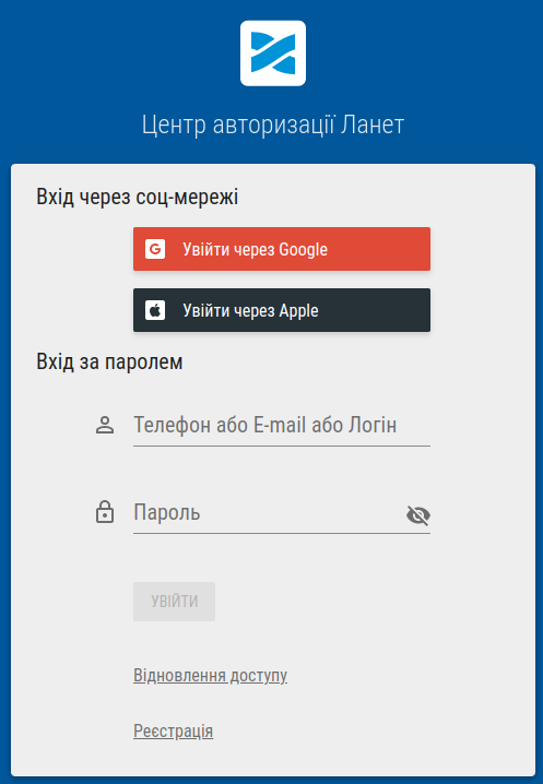 Для відновлення паролю в особистий кабінет – скористайтесь “Відновленням доступу” в Центрі авторизації Ланет (https://login.lanet.me/)