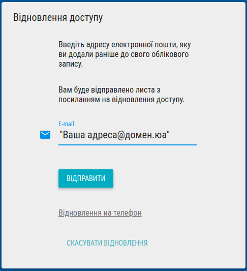 - чи вірно Ви ввели адрес Вашої електронної пошти або номер телефону
